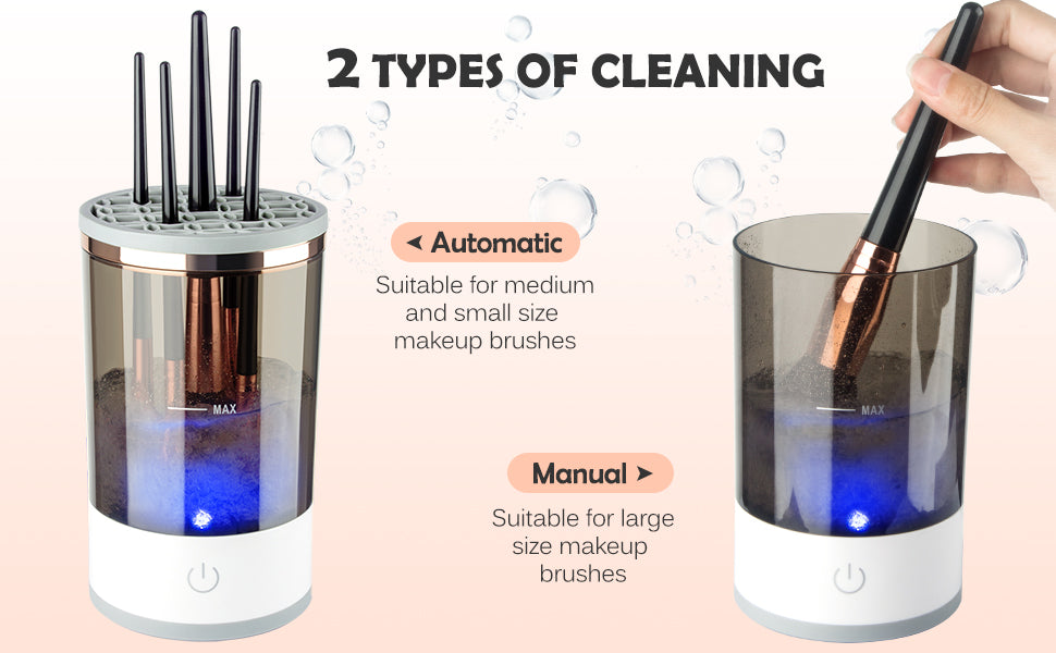 Product Name: Electric Makeup Brush Cleaner Highlight description: [Visual Body & Deep Cleaning] This electric makeup brush cleaner features a visual body that allows you to see the cleaning process clearly, and the gentle water spin cleaning does not damage the bristles, and you can clean multiple makeup brushes at...