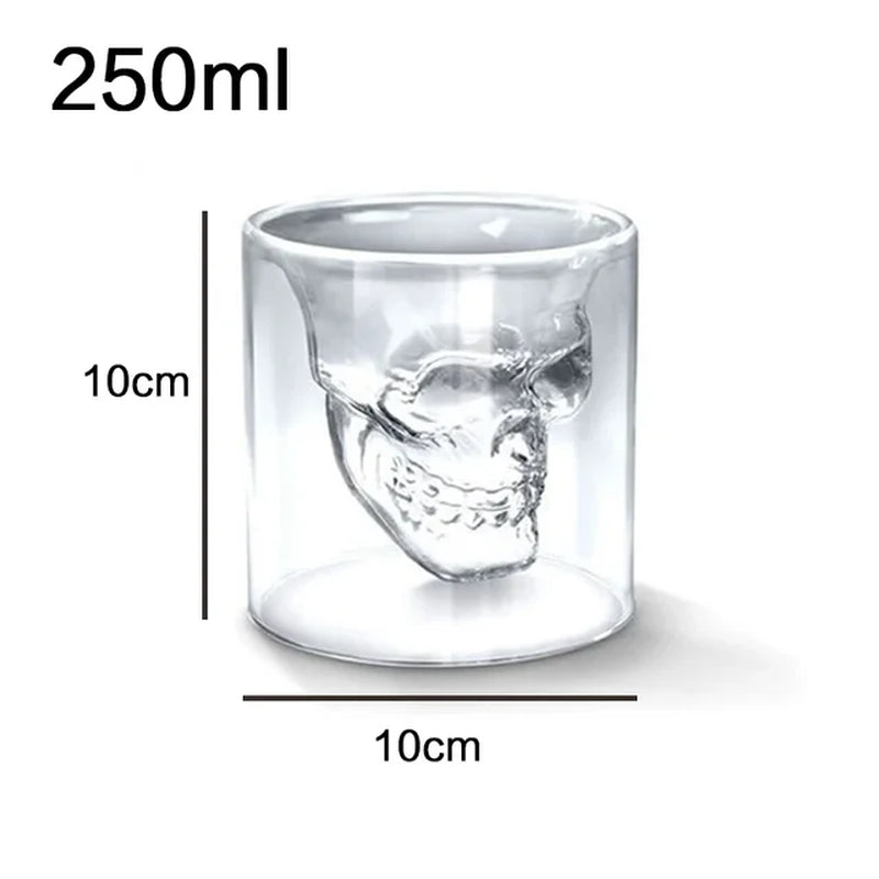 Skull Cup Double-Layered Transparent Skull Head Coffee Mug Crystal Glass Cup for Home Bar Club Whiskey Wine Vodka and Beer Wine